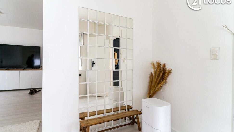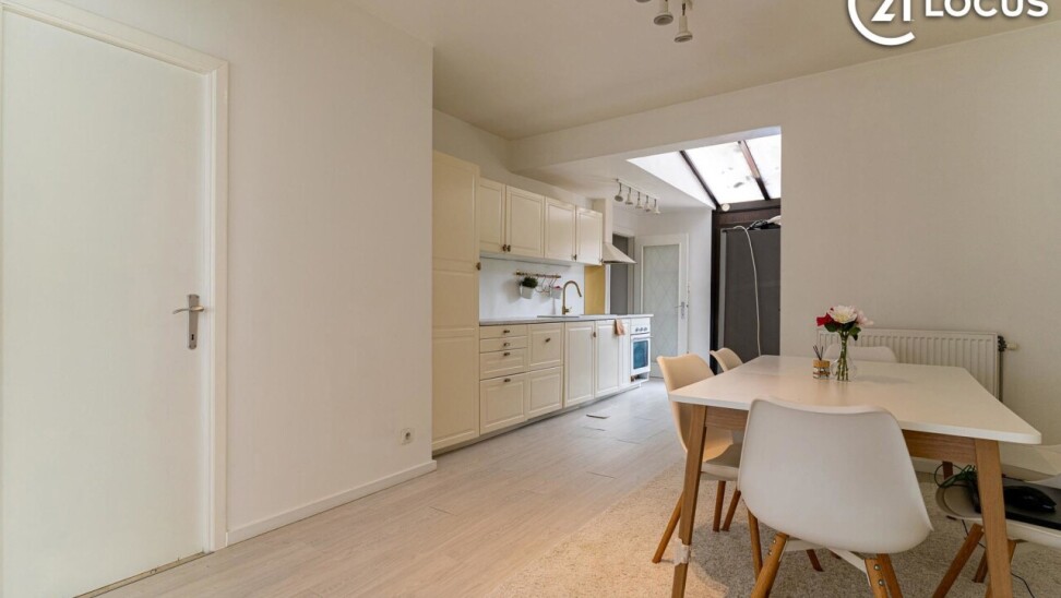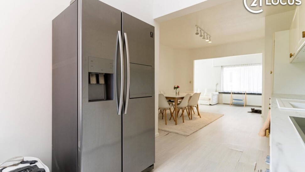 Bij het binnenkomen komt u terecht in een praktische inkomhal met toegang tot de leefruimtes. De woning beschikt over een aangename woonkamer van 25 m² die een comfortabele leefomgeving biedt. Aansluitend bevindt zich de functioneel ingerichte keuken met alle comfort en moderne toestellen, waaronder een inductiekookplaat.