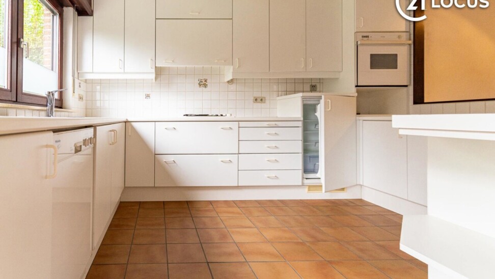 De leefruimte is ruim, licht en perfect ingedeeld voor gezellige familiemomenten. De open keuken sluit mooi aan op de living en biedt een praktische, huiselijke setting voor dagelijks koken en gezellig tafelen. Aansluitend vind je een handige bijkeuken/waskamer, een enorme troef voor wie comfort en bergruimte belangrijk vindt.